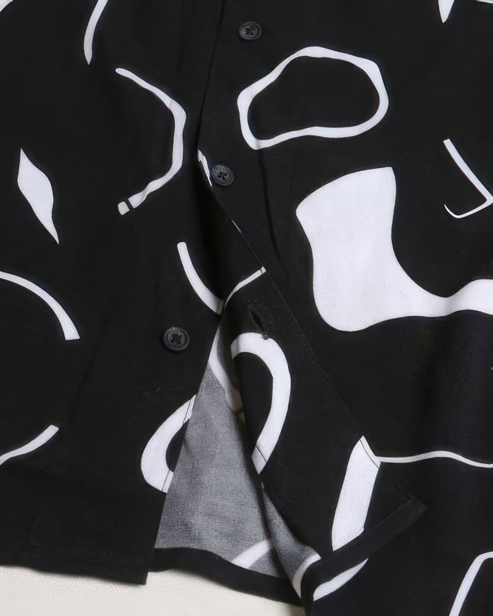 This shirt stands out with its unique combination of comfort, style, and bold design. The polyester fabric mimics the softness of rayon, providing a luxurious feel. The vintage geometric print adds a distinctive flair, making it a standout piece in any wardrobe.